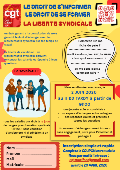 Que ce soit pour des questions sur vos droits au travail, des démarches administratives ou des sujets spécifiques comme MACIF Évasion , les commissions ou toute autre thématique qui vous concerne, nous sommes là pour vous informer et vous guider.